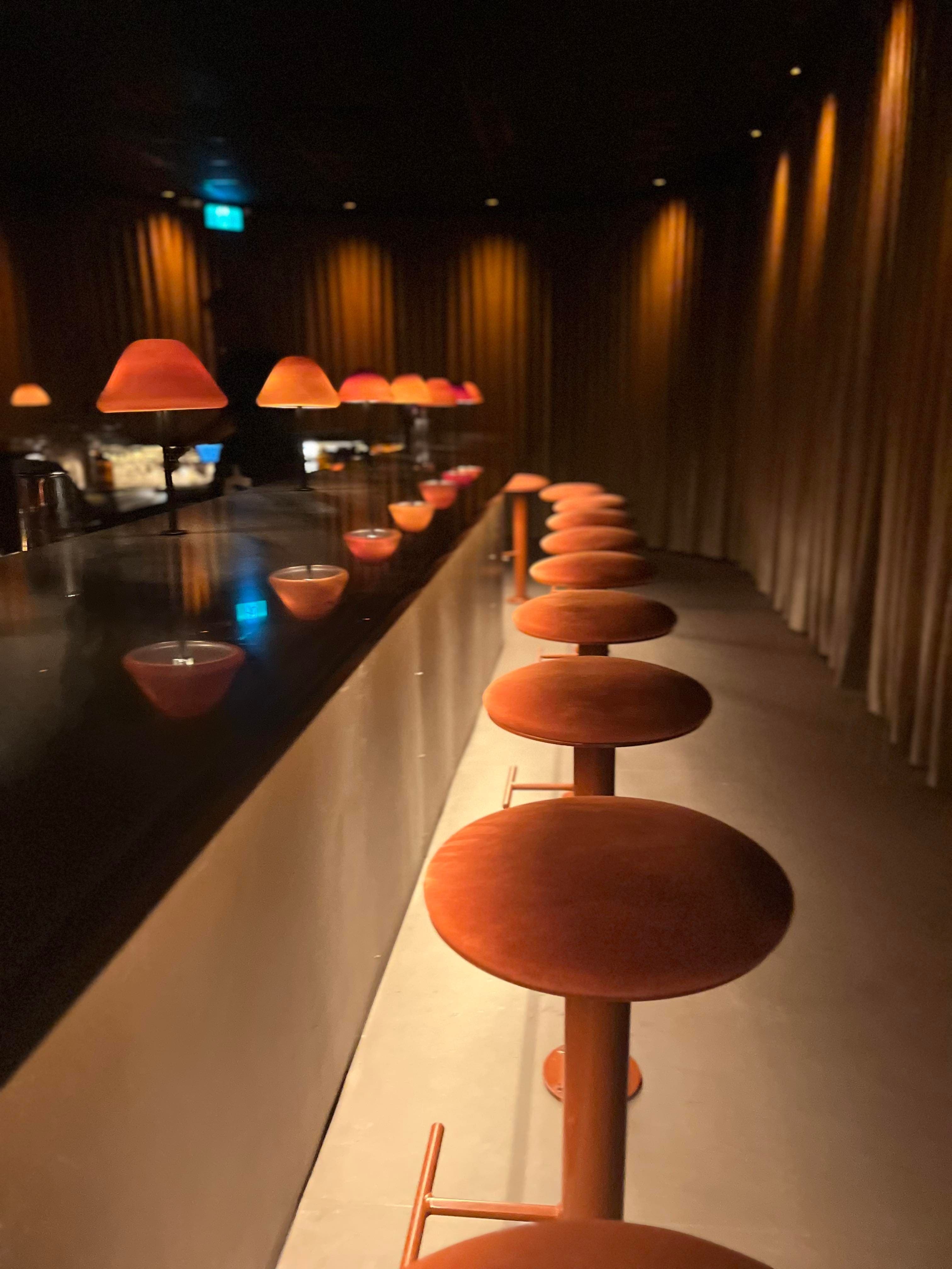 Le bar est la pièce maîtresse de cette nouvelle buvette. Majestueux, c'est le moins qu'on puisse dire. Seulement quelques tables basses sont installées en périphérie du bar. L'établissement, qui ne peut accueillir qu'une cinquantaine de personnes, nous reçoit dans l'intimité, ce qui ne manque pas de nous plaire.