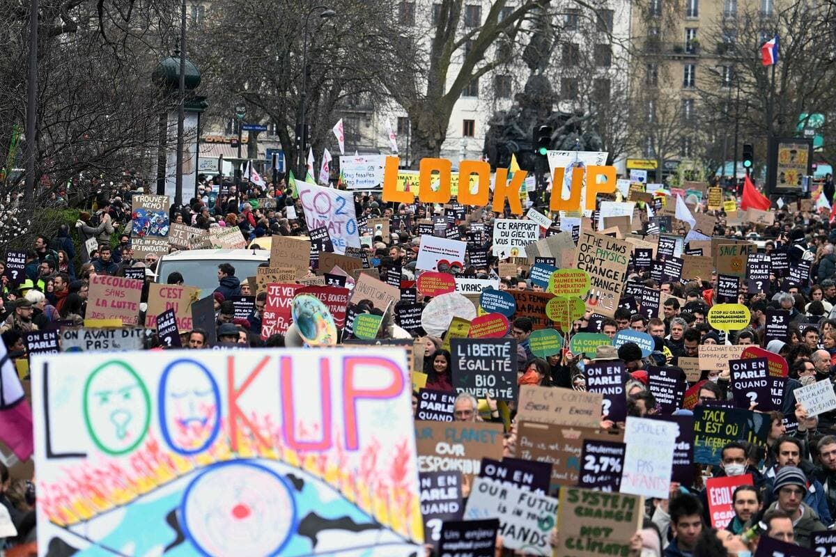 Des milliers de français sont sortis dans les rues du pays, samedi, brandissant des pancartes sur lesquelles on pouvait lire «Look Up!», en référence au film Don’t Look Up (Déni cosmique), une métaphore de la crise climatique, paru sur Netflix.