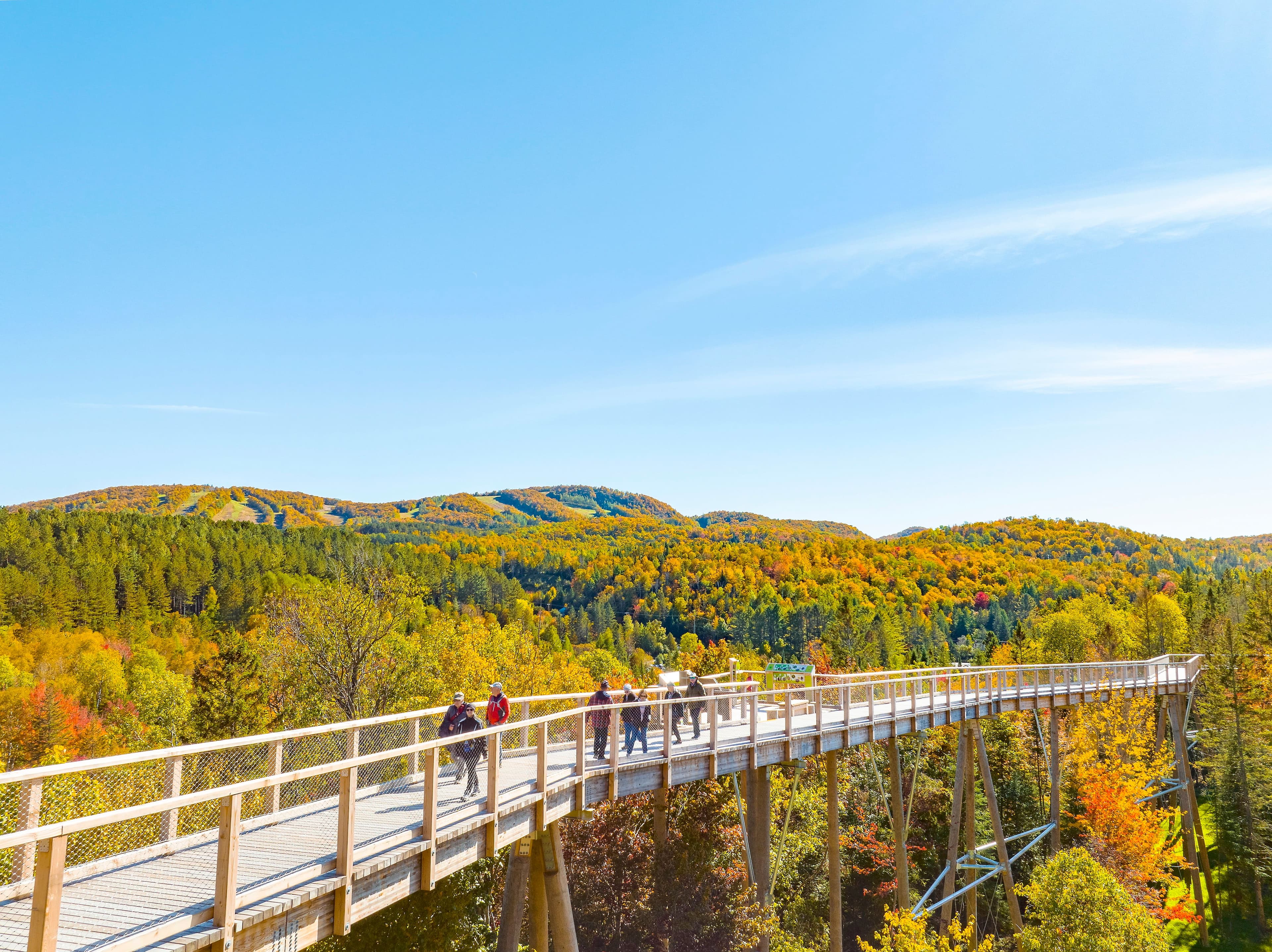 À seulement 15 minutes de Mont-Tremblant, la localité de Mont-Blanc abrite un attrait unique dans la région: le Sentier des cimes. Ce parcours de randonnée de 2,7 km, constitué d’une passerelle située au-dessus des arbres et d’une tour d’observation de 40 m (12 étages), offre des vues uniques sur les montagnes, et il est accessible même aux poussettes. Nouveauté: le site vient de se doter d’une glissade géante longue de 53 m de haut! Une fois votre visite des cimes terminée, vous pouvez poursuivre jusqu’à la station Tremblant, qui offre une belle programmation tout le mois de septembre.