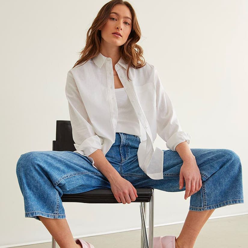 Cet été, la chemise blanche est ample, aérienne et d’un tissu naturel et confortable. On opte pour un modèle plus large pour un maximum de confort et un look décontracté en tout temps.