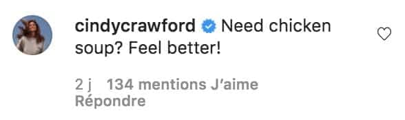 Fait intéressant à noter: sous la publication sur Instagram, l'ancienne mannequin Cindy Crawford a proposé au sportif de lui apporter de la soupe au poulet.