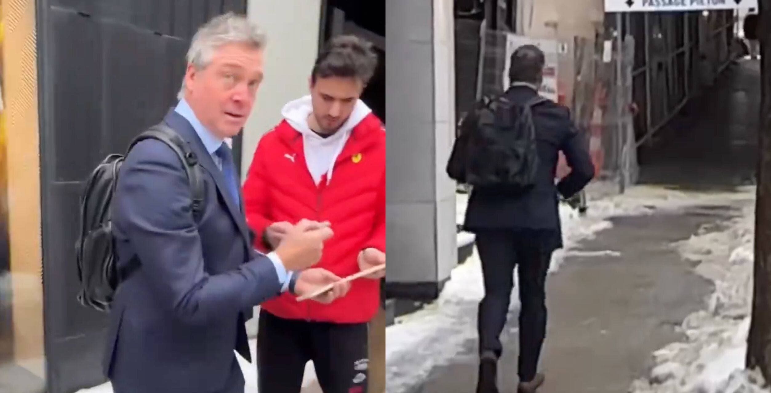 Ça ne doit pas être facile de se piquer une course en veston-cravate après du verglas.