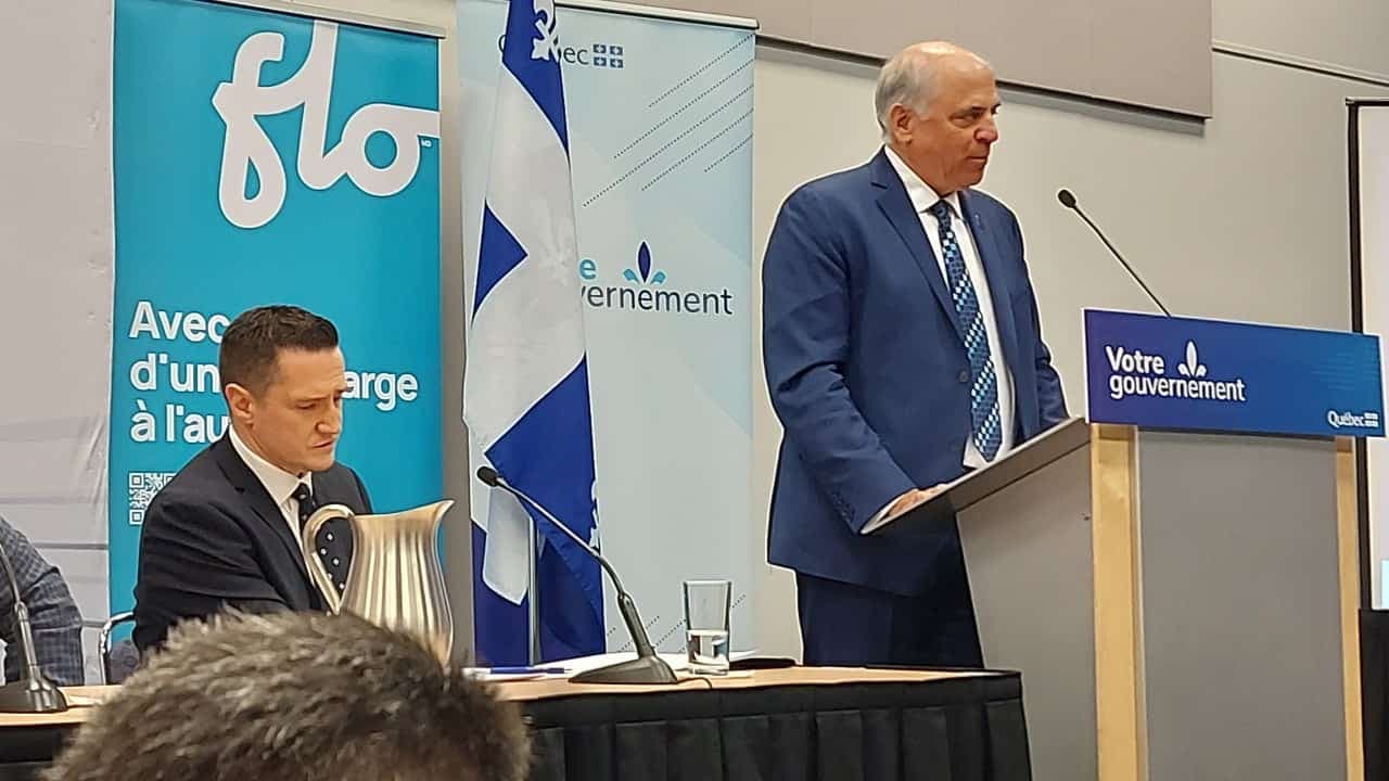 Plus tôt en journée, le gouvernement québécois avait annoncé un investissement de près de 60 millions de dollars pour bonifier de 30 % son réseau de bornes de recharge à courant continu (BRCC). Ces 1 200 bornes disposées aux quatre coins du Québec sont utilisées par les électromobilistes pour recharger leur véhicule plus rapidement lorsqu'ils sont sur la route.