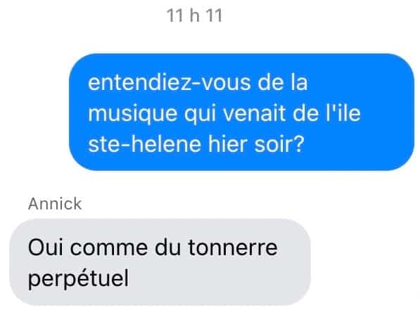 Comme le Sac de chips ne jure que par la rigueur de son travail, nous n’avons pas arrêté nos recherches à Twitter. Nous avons contacté la mère d’une de nos collègues, qui habite à Brossard, sur la Rive-Sud de Montréal (le Saint-Lambert des pauvres) depuis presque 65 ans. «As-tu entendu de la musique dehors hier?». «Oui, comme un tonnerre perpétuel», a-t-elle répondu.