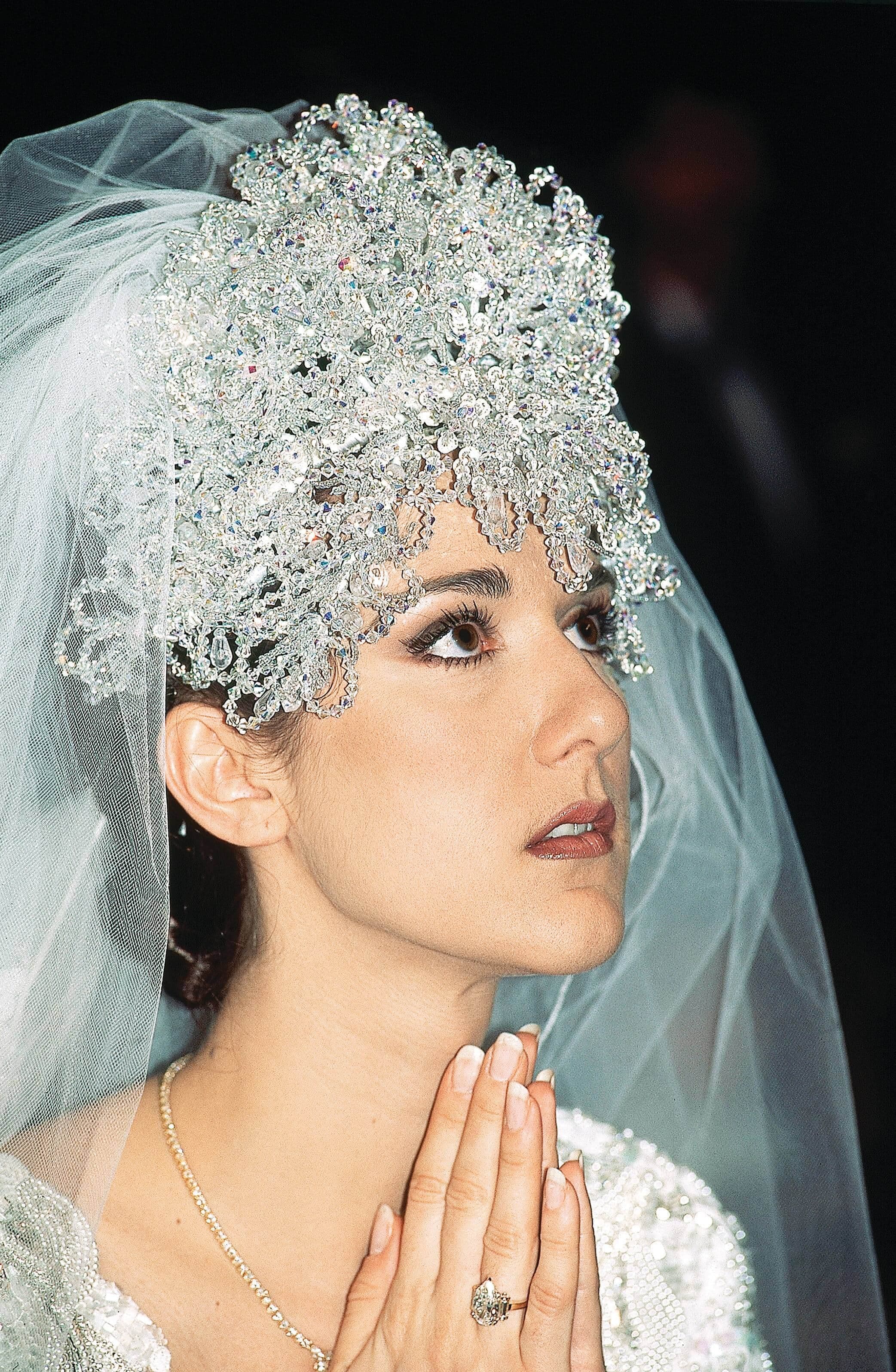Mais plus que la robe, c’est l’imposant diadème que Céline portait sur la tête qui a marqué les esprits. Composée de 2000 cristaux Swarovski, la coiffe pesait près de 7 livres et avait dû être cousue dans les cheveux de la chanteuse pour bien tenir en place. D’ailleurs, la star a récemment révélé que le lendemain du mariage, elle avait dû consulter un médecin, car elle avait une énorme bosse sur le front en raison de son diadème. Elle a dû prendre des antibiotiques pendant trois semaines à cause de cette blessure crânienne.