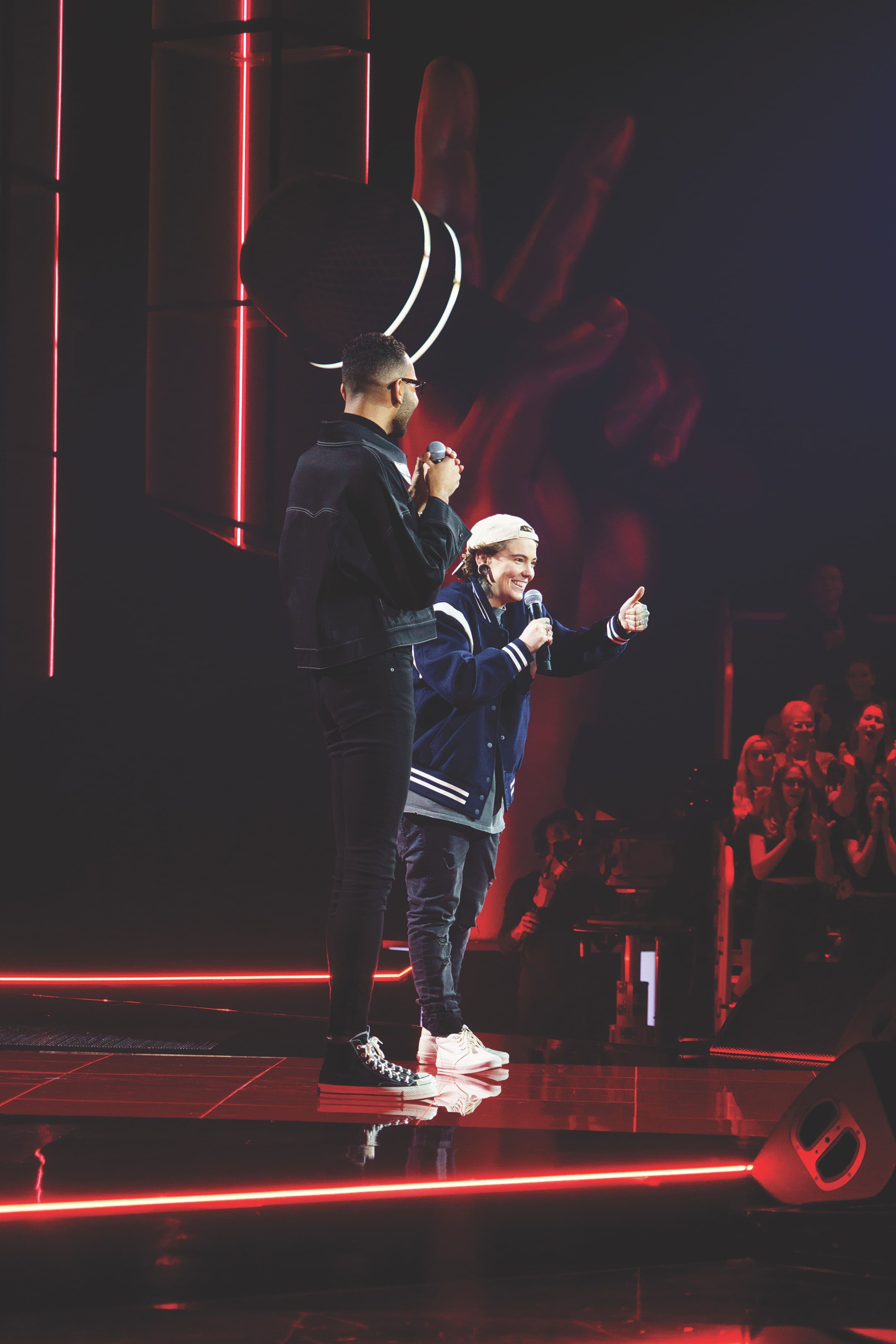 J'aime les voix atypiques. Avec Ryan, par exemple, le fait qu'il parle au début de la chanson comme si c'était un slam, c'est venu me chercher. Il n'y en a pas eu beaucoup qui tentent ça, et ça, ça m'a plu. Je suis allée chercher des voix qui sortent de l'ordinaire. D’ailleurs, je l'ai choisi aussi à l'aveugle. Dans les coulisses, je me mets dos à la scène. Je ne veux pas les voir avant parce que les préjugés, c'est humain. Si je m'étais mise face à eux, il y a peut-être des gens pour lesquels, par exemple, je me serais dit que j’avais déjà ce genre de profil. Je ne voulais pas me bloquer dans mes choix.