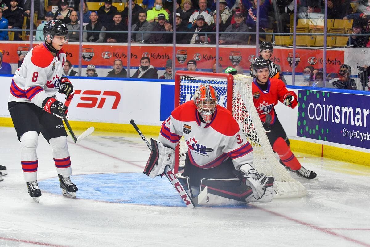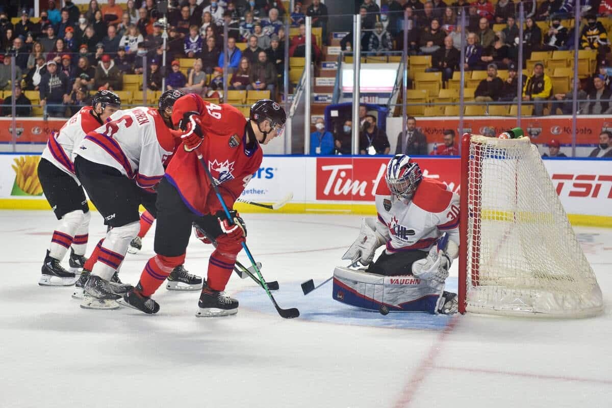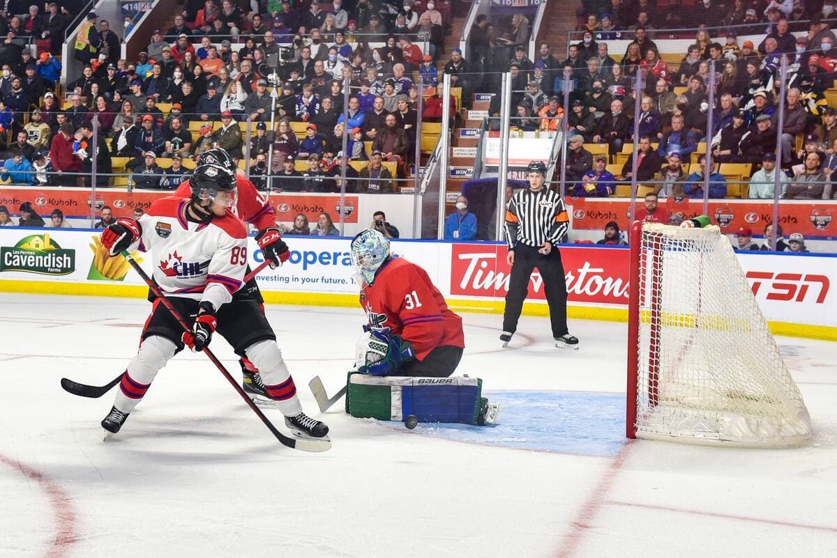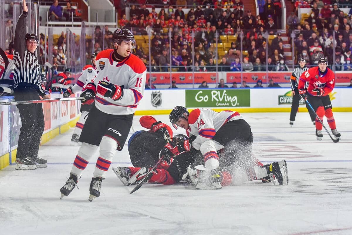 De l’autre côté, les Blancs ont pris contrôle de la rencontre, inscrivant trois buts sans réplique, dont celui de l’attaquant des Remparts de Québec Nathan Gaucher, qui, bien placé devant le filet, a redirigé une passe de son partenaire de trio et membre des Olympiques de Gatineau Antonin Verreault pour faire 3 à 1.