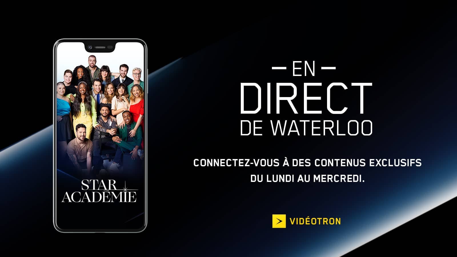 Clients Mobilité Vidéotron, vous pouvez visionner des contenus exclusifs de Star Académie. Du lundi au mercredi, les Académiciens chanteront en cœur sur TVA+ pour vous faire patienter jusqu'au variété du dimanche.