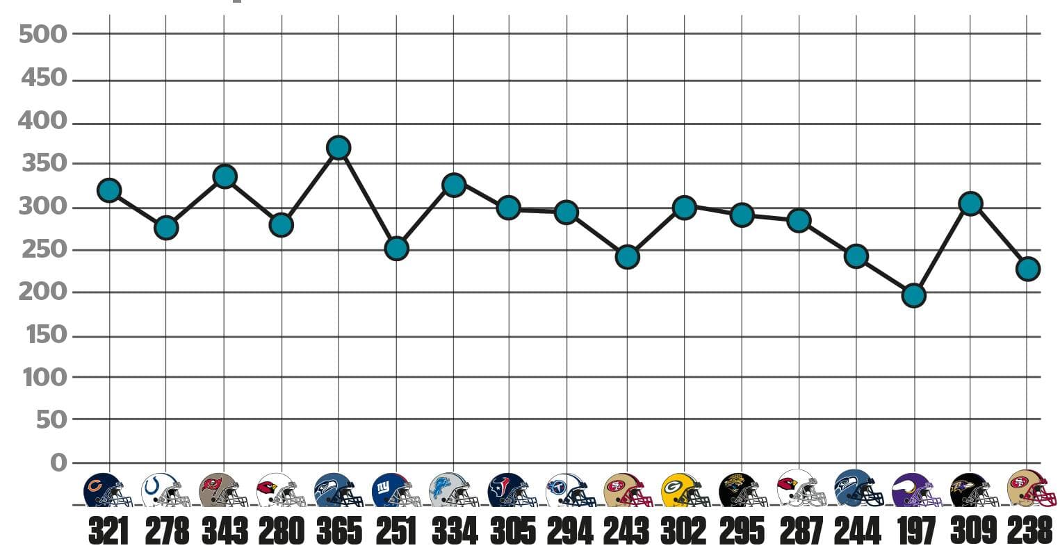 16 ans | Défaite de 48-21 face aux Buccaneers | 24 en 44 | 272 verges | 2 touchés / 5 interceptions