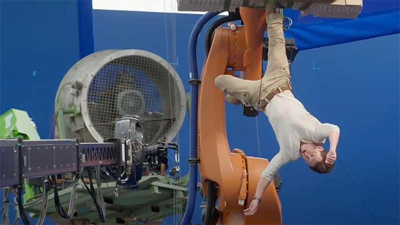 Partagées ce lundi, les quelques séquences, accompagnées d’une brève entrevue avec l’acteur britannique, montrent ainsi plus en détail le tournage de la scène où Nathan Drake s’échappe d’un avion-cargo en plein vol. Et pour ce faire, Holland a effectivement été brassé avec vigueur, suspendu dans les airs et bousculé par des cubes de mousse géants.