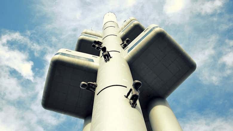 Cet hébergement offre une seule chambre située à 70 mètres de hauteur sur une tour de télévision. En plus de la chambre, on y retrouve un bar, un restaurant et un observatoire. La vue 360° est à couper le souffle, et le budget... Il faut prévoir 900 euros par nuit.