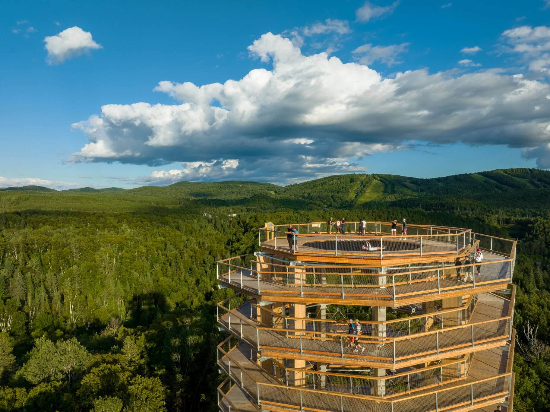 Un sentier pas comme les autres a ouvert ses portes le 24 juillet dernier à Saint-Faustin–Lac-Carré. Il s’agit du Sentier des cimes, un parcours de bois de plus d’un kilomètre (1250 m) construit à hauteur d’arbres. Le point le plus élevé de cette passerelle est un tour d’observation de 40 m qui offre une vue à 360 degrés sur les montagnes des Laurentides. Construit sur le site de l’ancienne pisciculture de Saint-Faustin, le Sentier des cimes comprend des panneaux éducatifs et il est accessible à tous, incluant les personnes en fauteuil roulant, triporteur ou poussette.