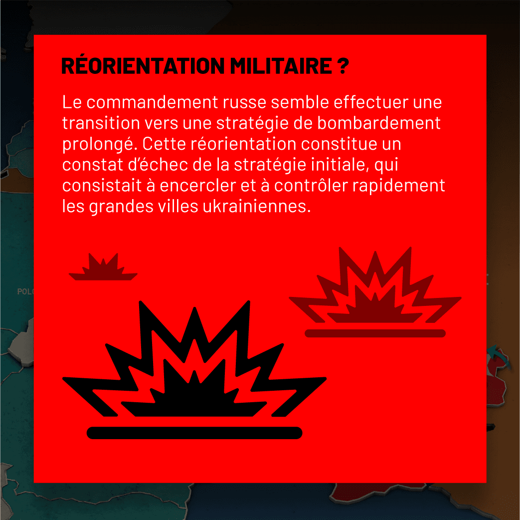 Mis à part quelques modestes gains, l’armée russe continue de pilonner plusieurs villes ukrainiennes sans afficher de progression importante.