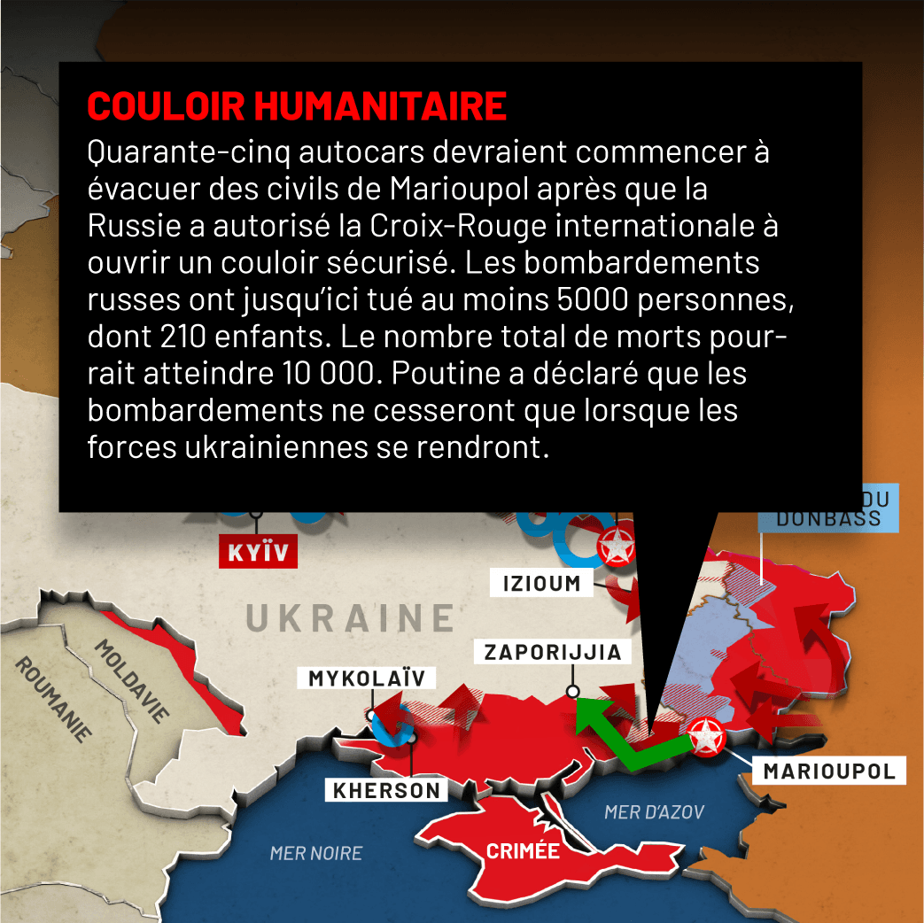 12h36 | Les résidents de Marioupol ne sont pas en mesure d’évacuer la ville martyre, indique la Croix-Rouge.