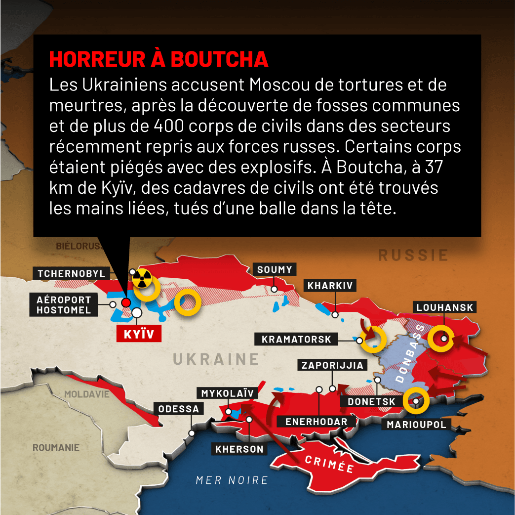 Le conflit en Ukraine se poursuit pour une 40e journée, alors que les images de l'horreur à Boutcha continuent de bouleverser le monde.