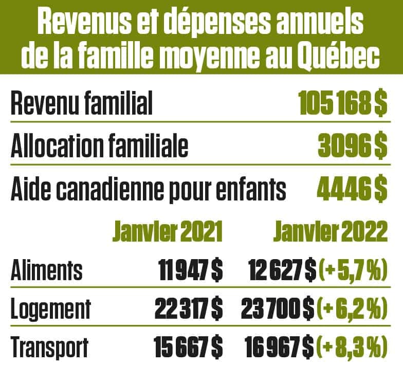 Entre janvier 2021 et janvier 2022, le prix payé par cette famille pour ces trois composantes a grimpé de 3363 $.