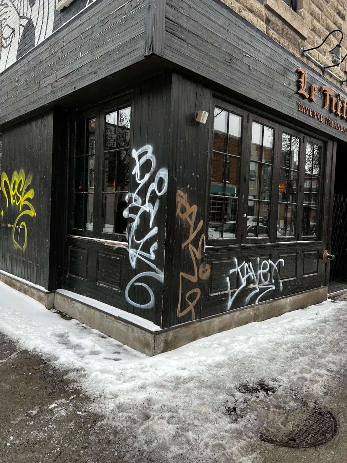 C’est Rémi-Pierre Paquin, copropriétaire de trois succursales du pub Le Trèfle (deux à Montréal et une à Québec), qui a annoncé que la devanture de sa taverne est désormais tapissée de graffitis.