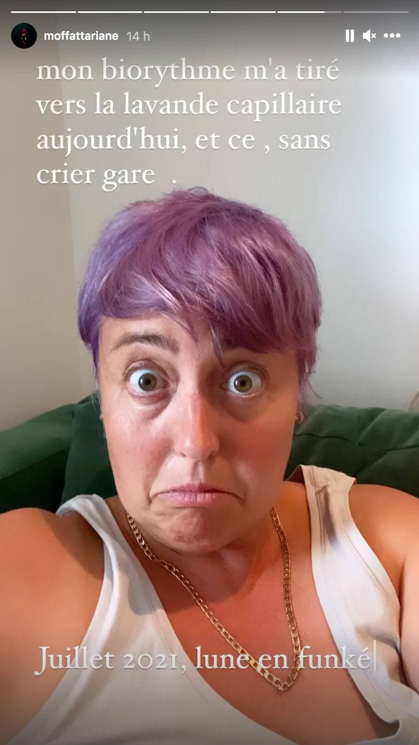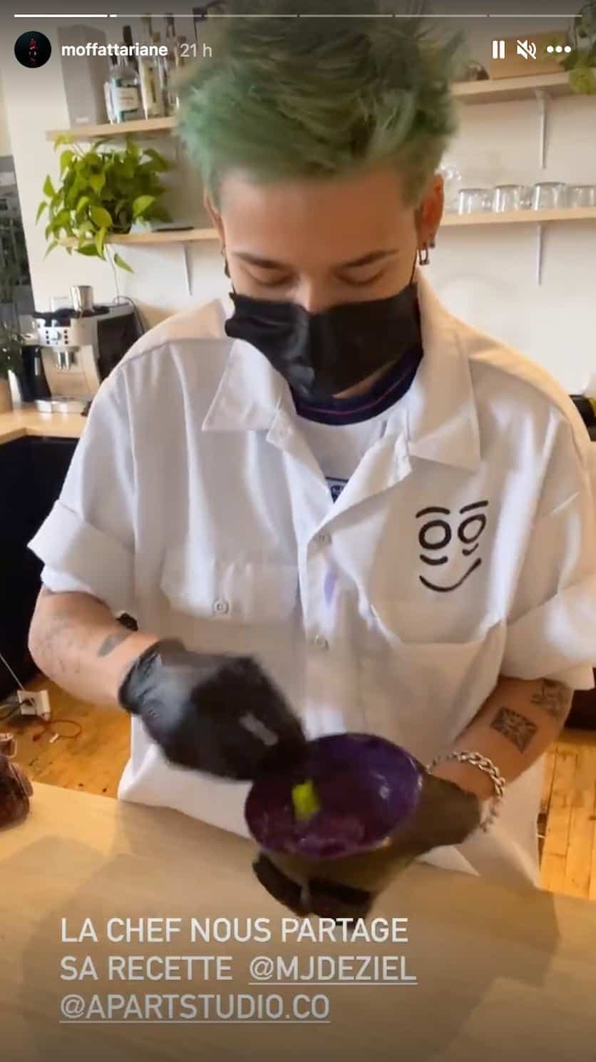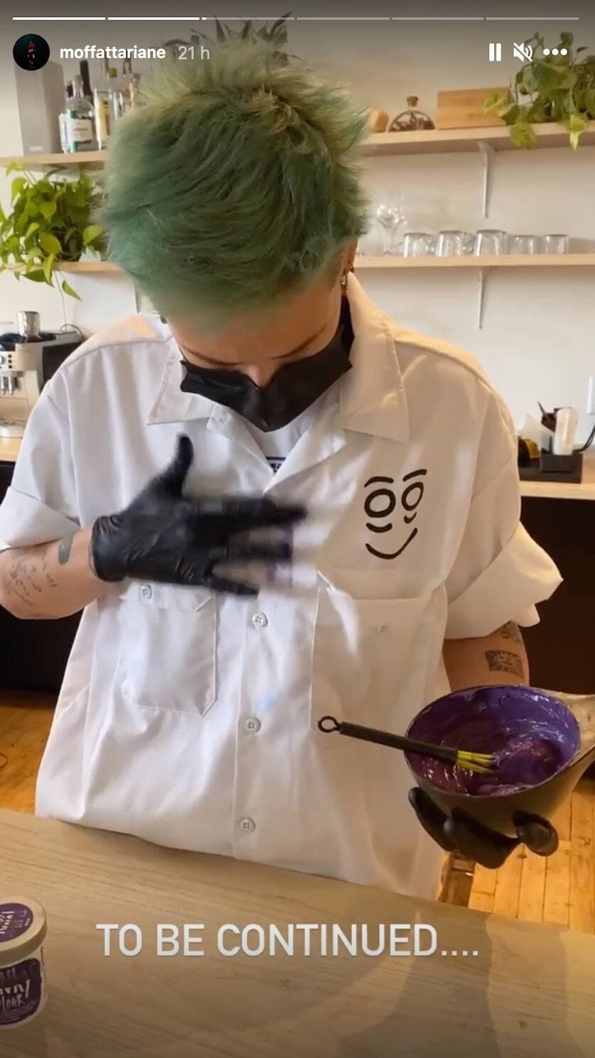 Dans les stories d'Ariane Moffatt, on peut voir la coiffeuse en train de mélanger sa préparation, qui s'apparente à un violet.