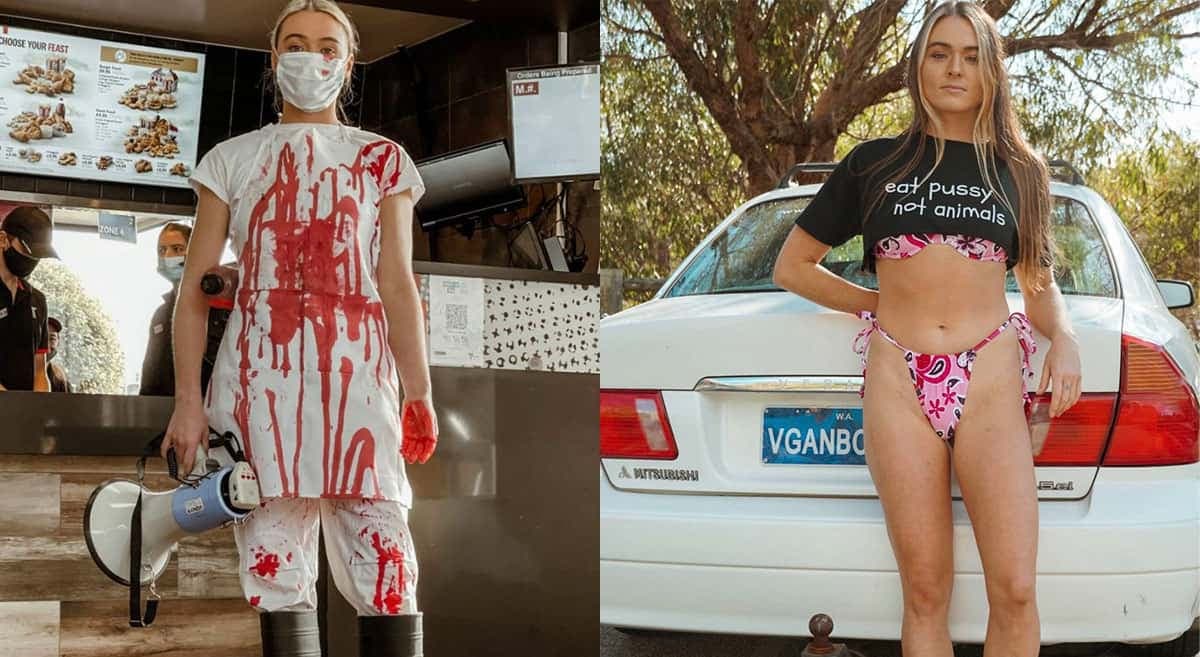 Une militante végane sexy devient la risée après avoir vandalisé un PFK