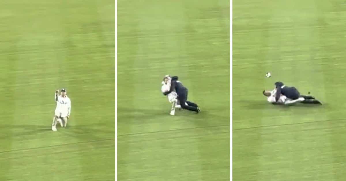 Quelques responsables de la sécurité ont ensuite menotté le partisan ayant un chandail de Mookie Betts sur le dos pour le transporter hors de la surface de jeu.