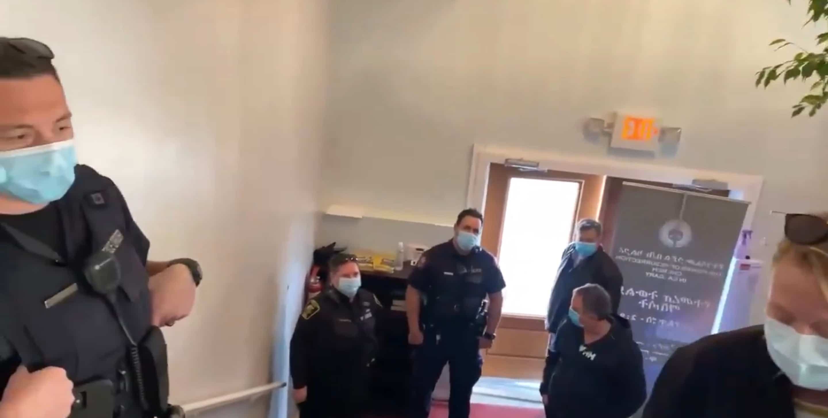 Dans une vidéo devenue virale depuis, on peut entendre le pasteur demander aux policiers de quitter les lieux, en augmentant le ton graduellement. En moins de deux minutes, il les qualifie de nazis, de Gestapo et de communistes.