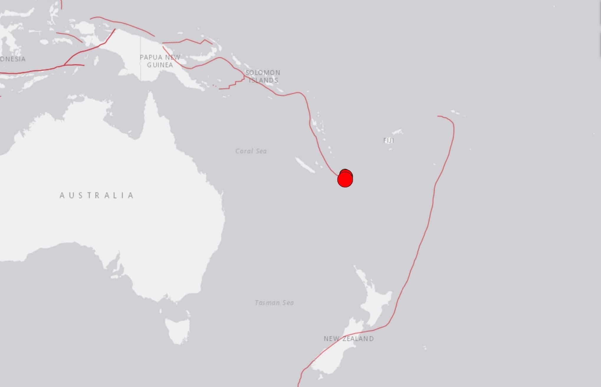 L’épicentre du séisme a été localisé à environ 400 kilomètres au sud-est de l’archipel des îles Loyauté, et à environ 430 kilomètres du Vanuatu, a indiqué l’Institut de géophysique américain (USGS).