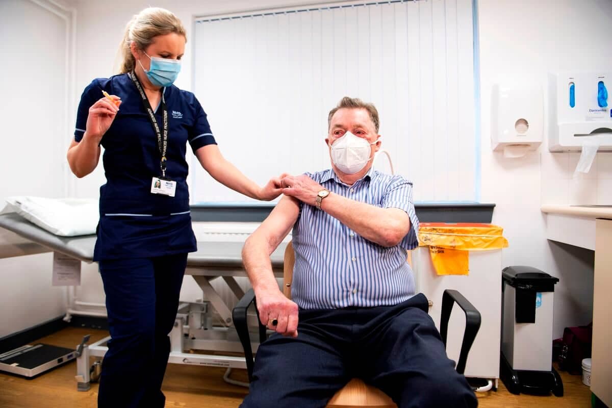 Masque sur le visage, ce retraité qui travaillait dans la maintenance a relevé la manche de son polo pour que l’infirmière en chef de l’hôpital Churchill de l’Université d’Oxford puisse lui injecter le vaccin «national» britannique avant de lui poser un pansement, devant l’objectif des caméras.