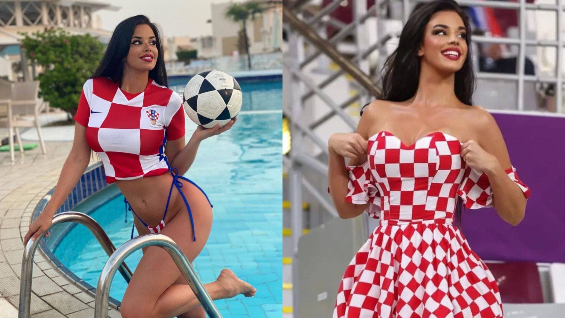 La mannequin croate Ivana Knöll, 30 ans, fait sensation à la Coupe du monde parce qu’elle a assisté aux rencontres de son équipe favorite avec des tenues révélatrices aux couleurs du pays.
