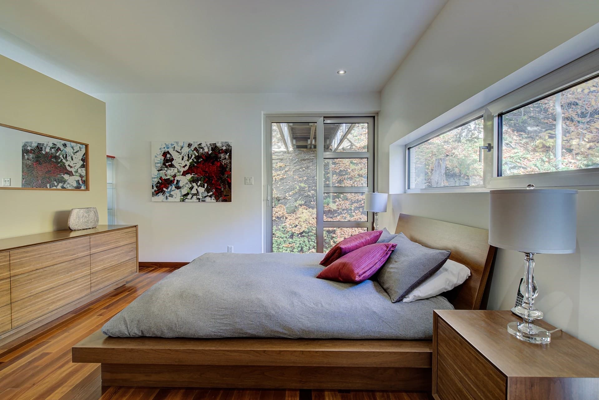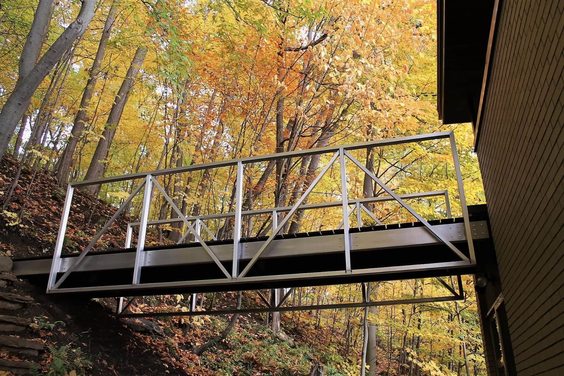 Une maison midcentury avec un pont suspendu perchée sur le mont Saint-Bruno pour 2 985 000$