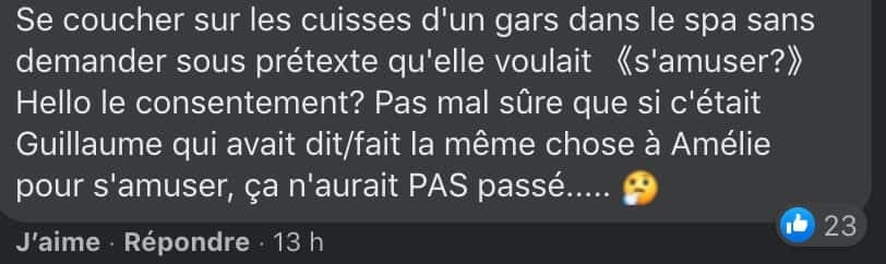 Les fans de l'émission ont trouvé qu'il s'agissait d'un manque de respect de la part de Brigitte. Certains ont même mentionné que, si les rôles avaient été inversés, on se serait interrogés sur la notion de consentement entre les deux adultes.