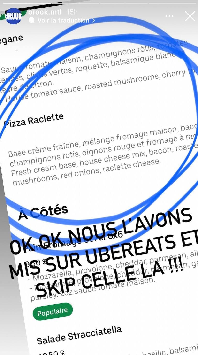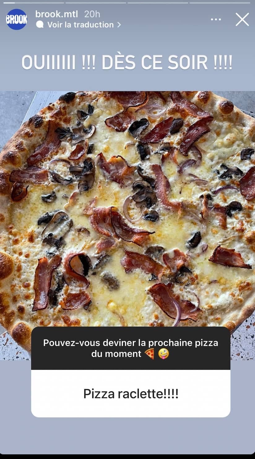 Le bar à café et pizzéria de style new-yorkaise, Brook, propose une pizza à faire saliver: une pizza-raclette.