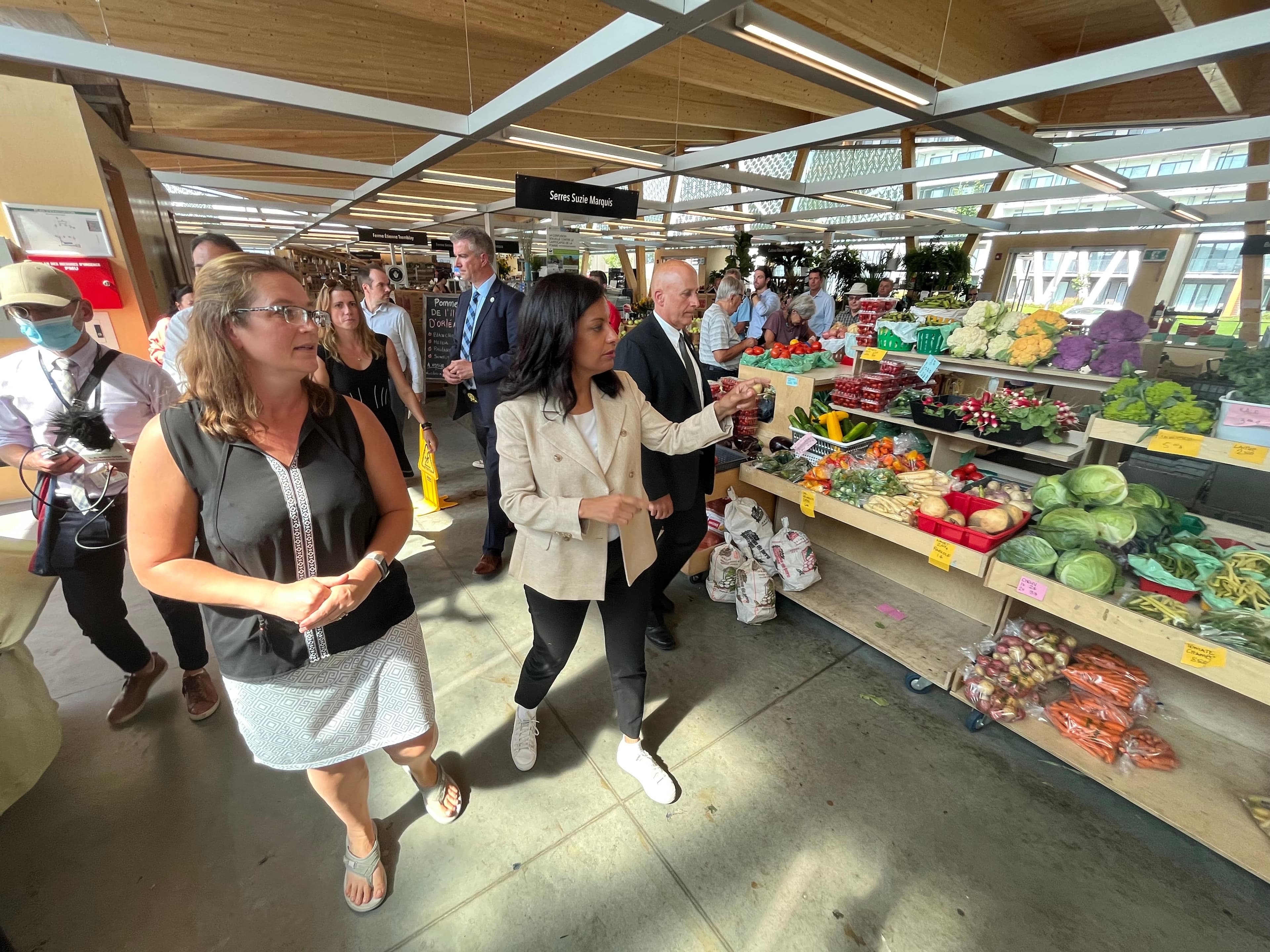 Puis, en après-midi lundi, Mme Anglade a fait la visite du Marché public de Sainte-Foy en compagnie de plusieurs de ses candidats de la région de Québec.