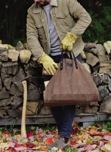 10. Sac à bûches cuir et coton ciré