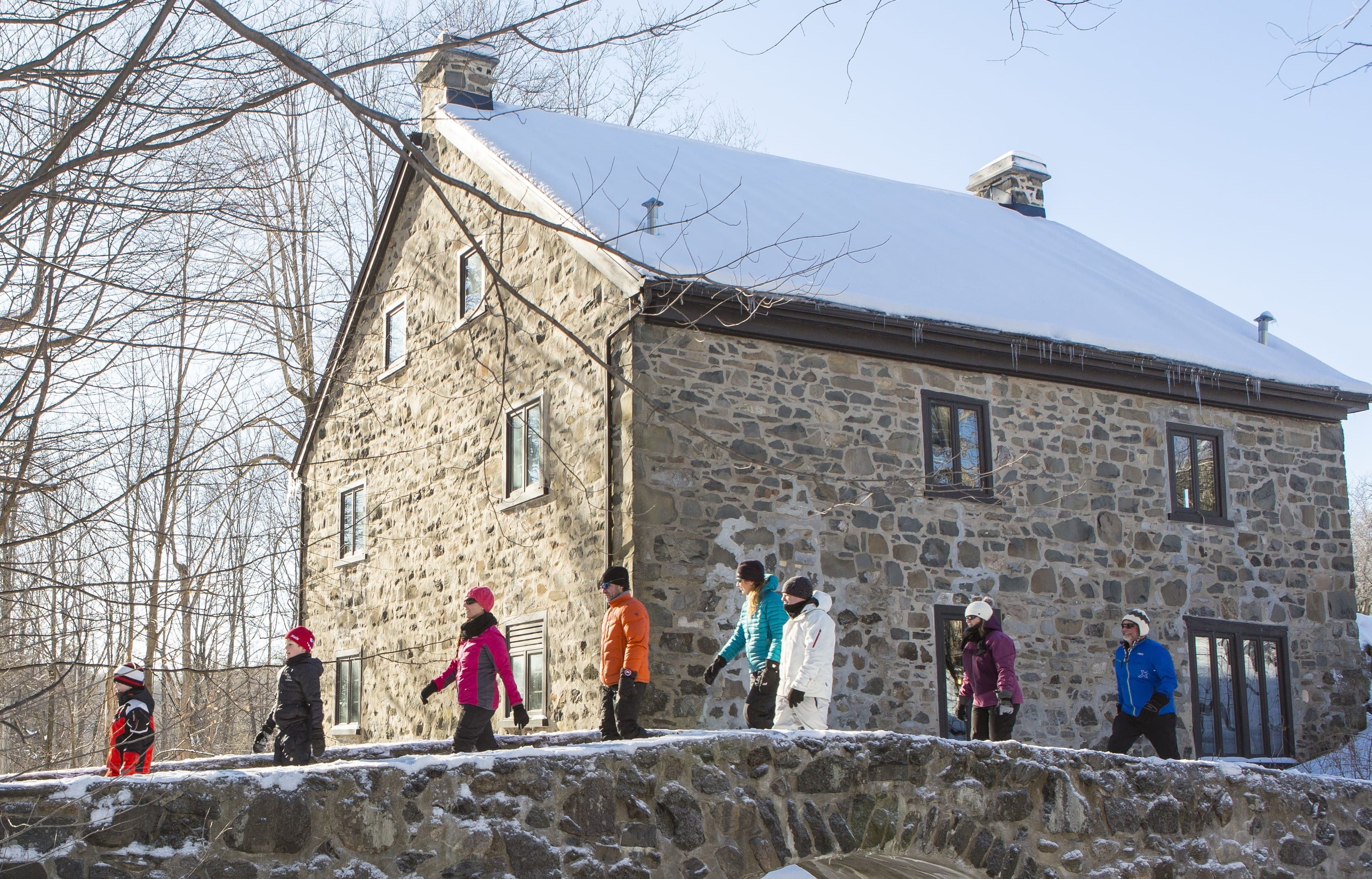 À 15 minutes du Vieux-Québec, un pont suspendu, accessible à pied, surplombe la chute givrée, plus haute que les chutes Niagara. C’est à un quart d’heure du manoir. Selon les conditions de neige, notre randonnée peut se poursuivre le long de la rivière sur le sentier des Résurgences.