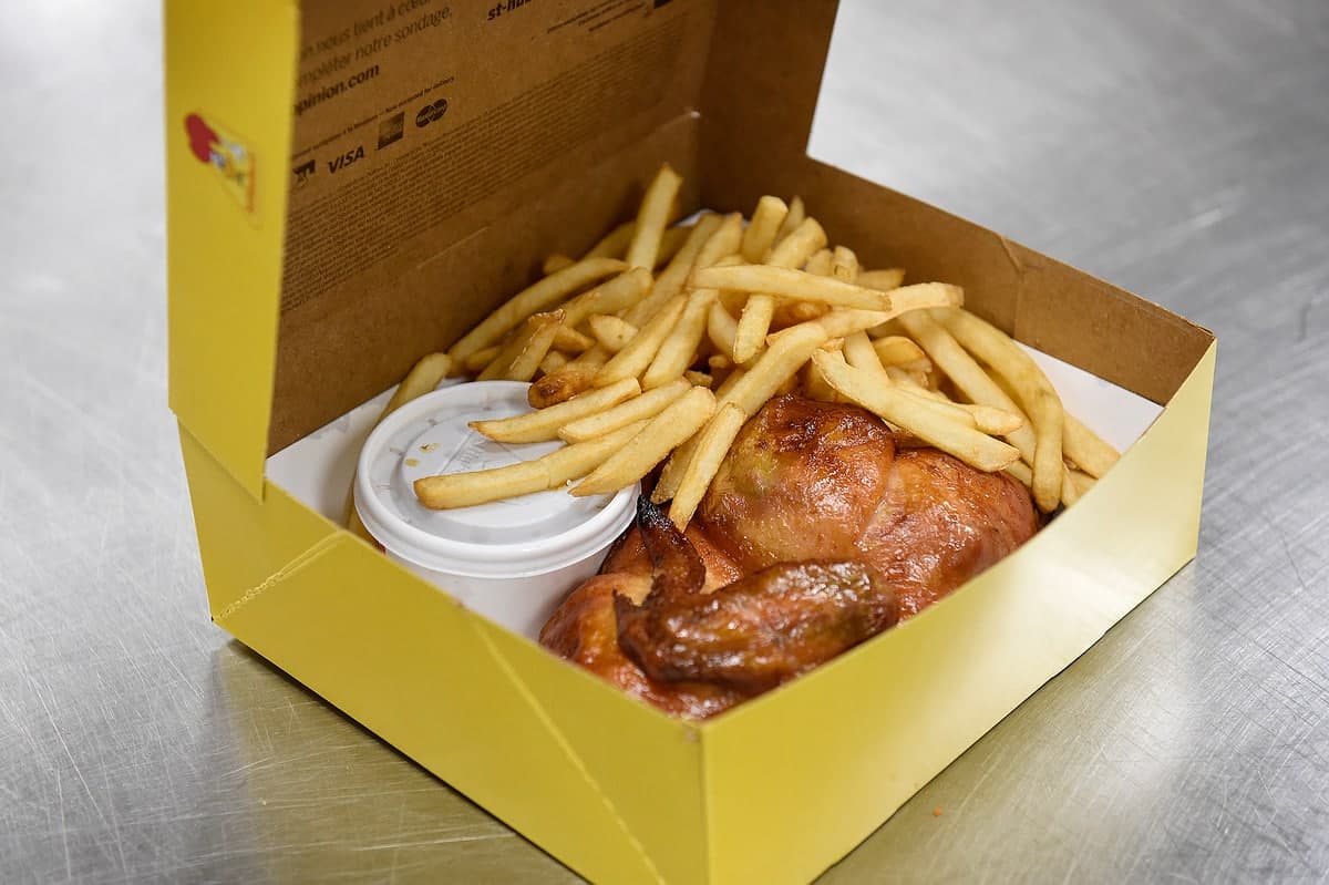 Prenons un classique comme exemple: une cuisse de poulet rôti, accompagnée de frites, de sauce barbecue et de salade de chou – crémeuse ou traditionnelle.