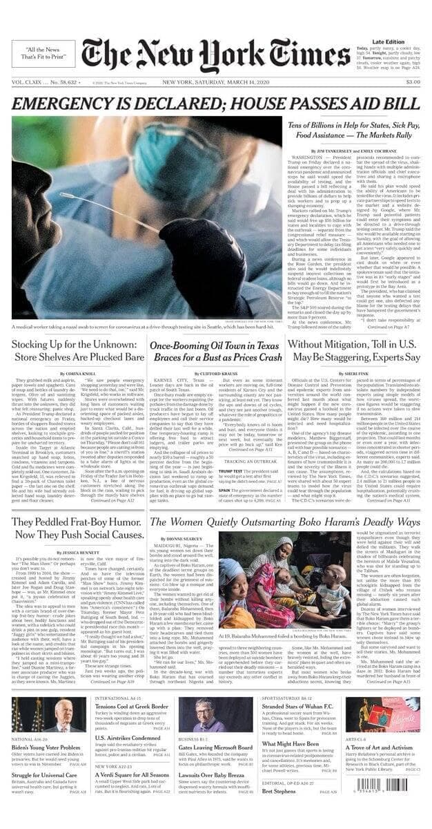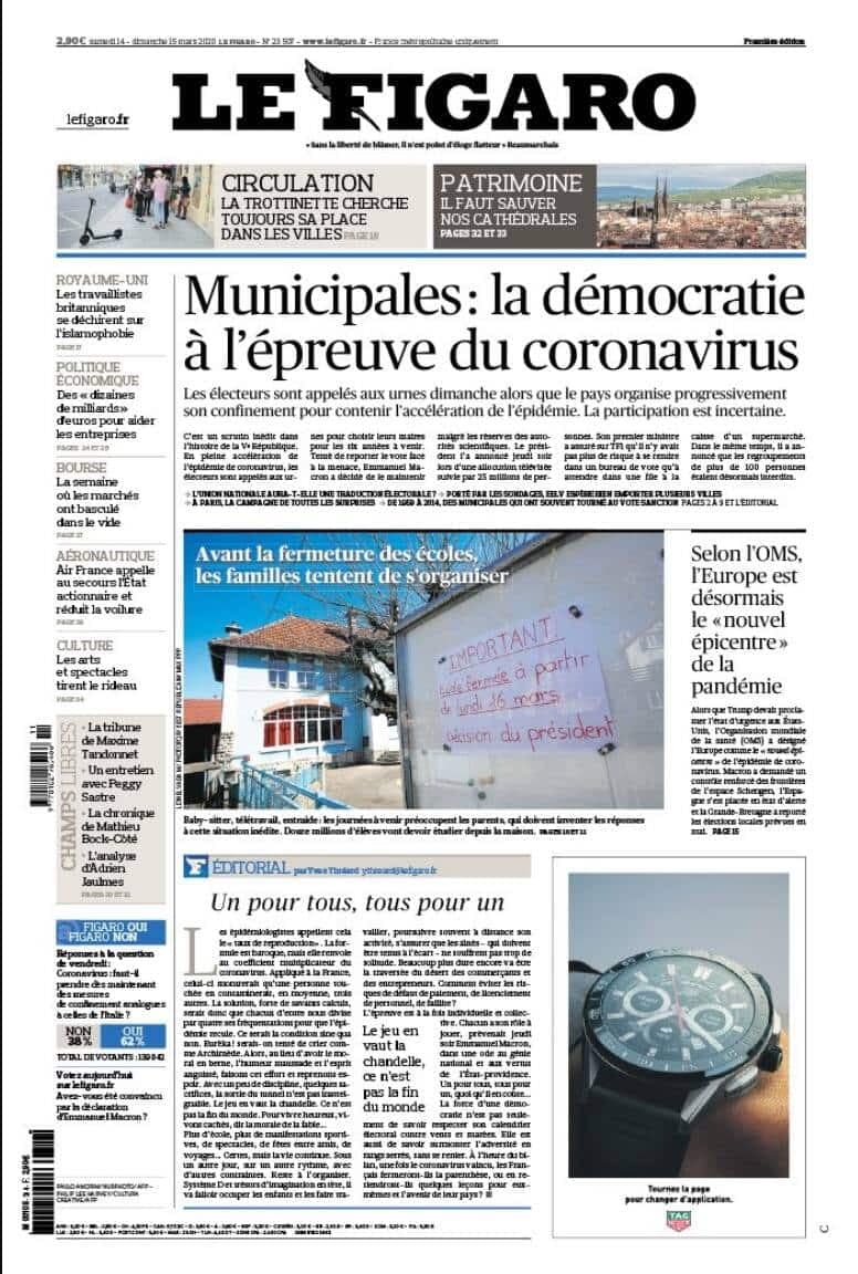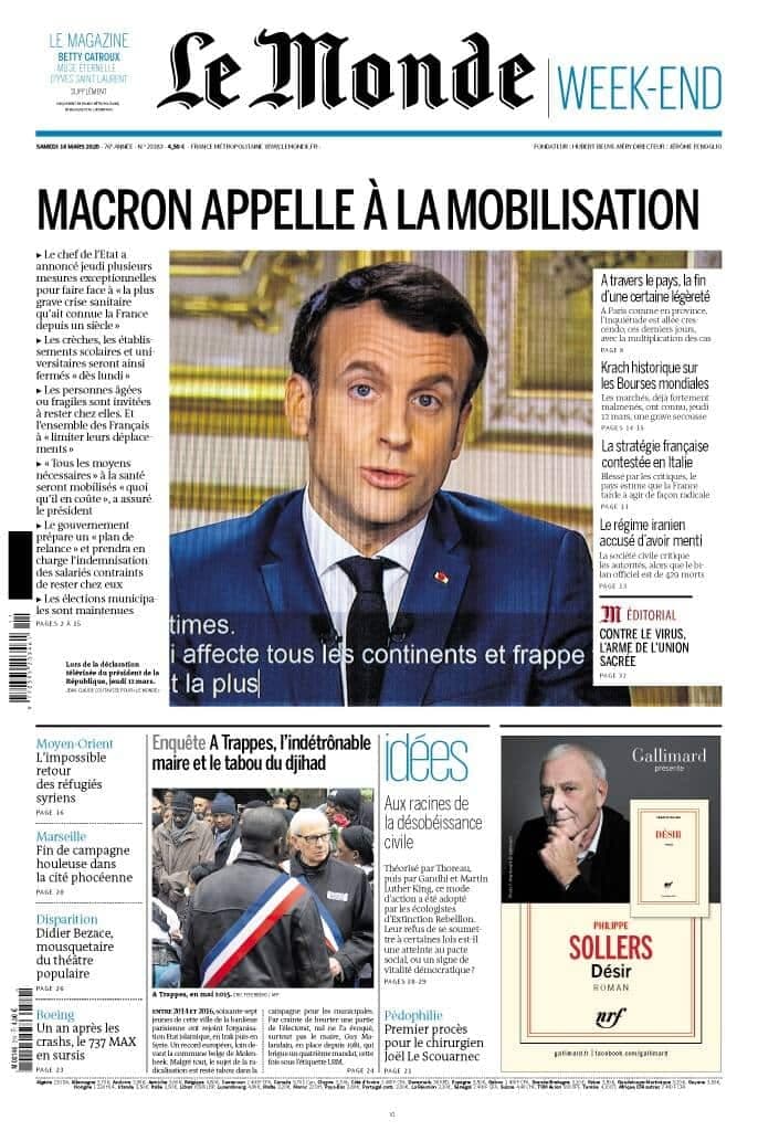 Voici comment titraient de grands journaux étrangers le 1er samedi de la pandémie