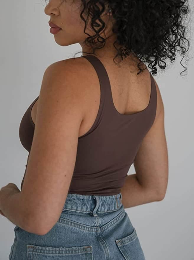 Joli et pratique, ce débardeur est offert en cinq tailles distinctes, allant de la taille «petite» à la taille «très grande». Il est aussi offert en six couleurs classiques et intemporelles, ce qui nous a permis de pouvoir l'agencer avec n'importe quelle pièce : un jean en denim, une longue jupe fleurie et un veston oversize.
