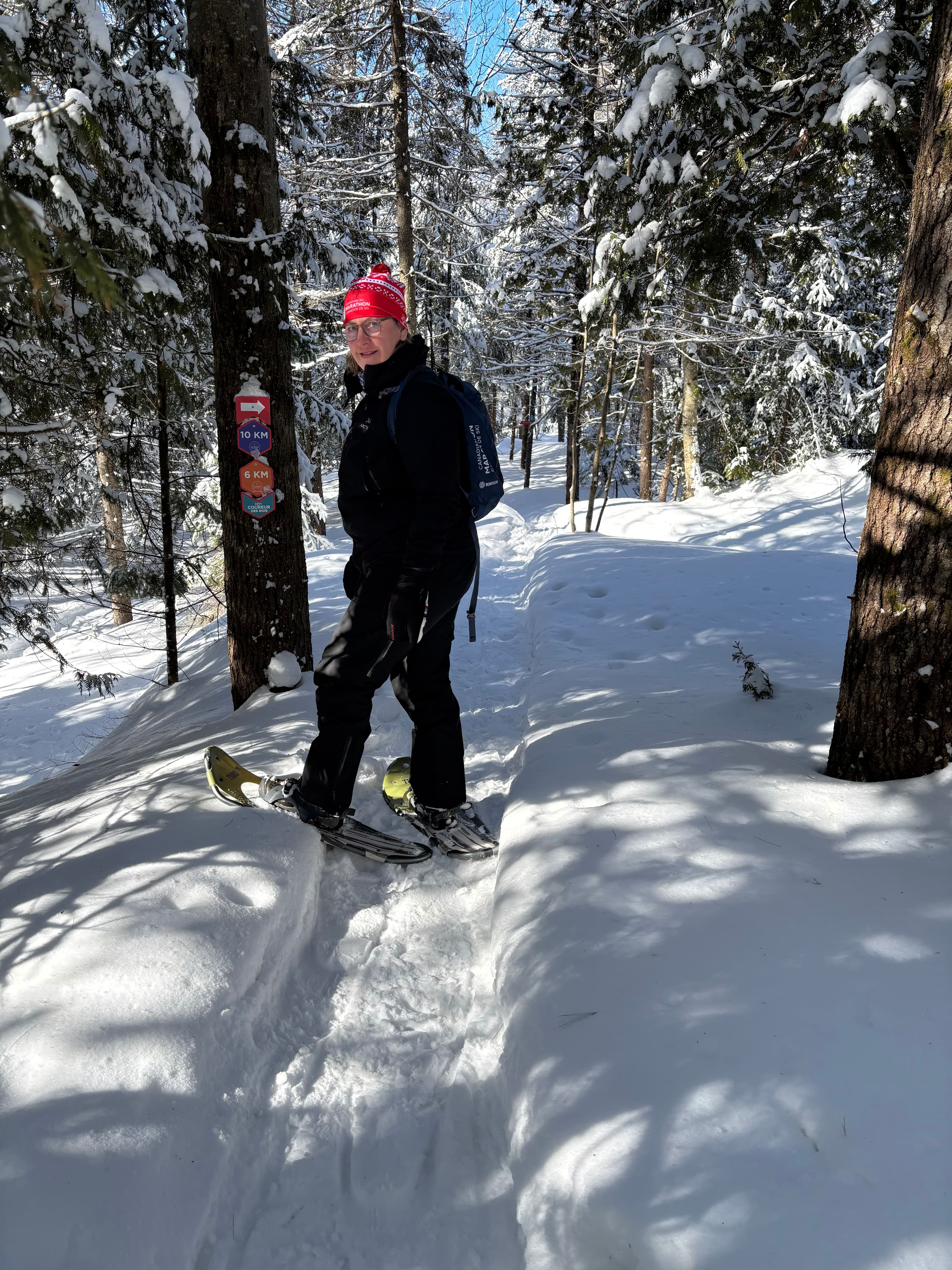 Au fait, les sentiers de ski de fond m’ont semblé bien tracés et bien entretenus. Comme pour la raquette, la signalisation nous aide à nous retrouver.