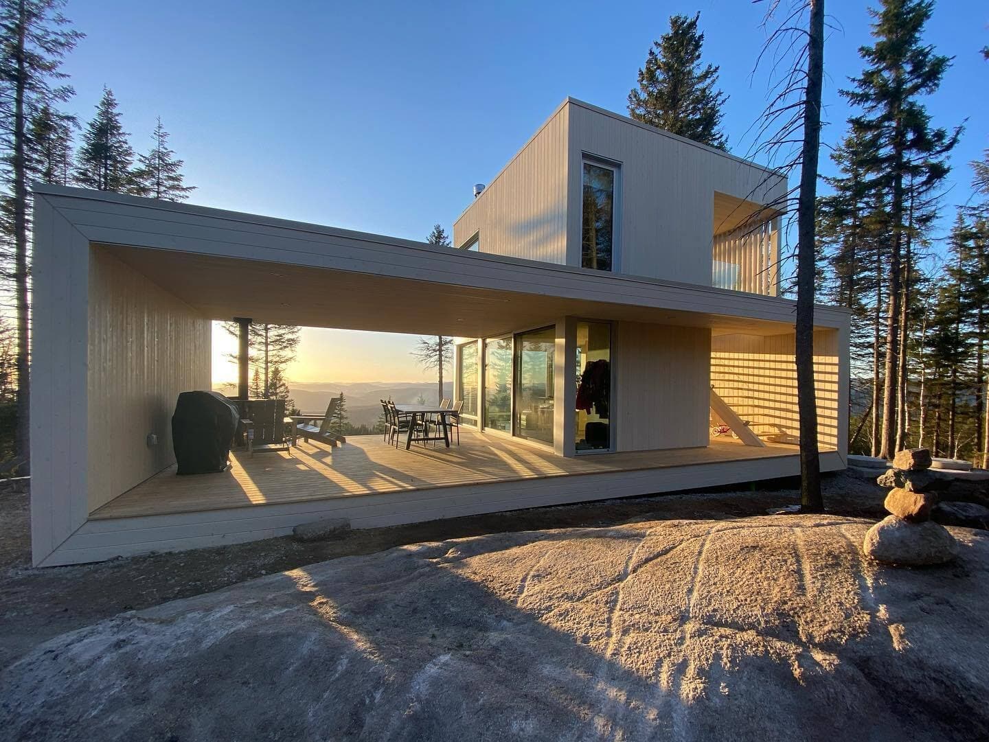 Perché à 550 mètres dans les montagnes, le chalet The Lagöm offre une vue imprenable sur l'hiver québécois. Puisqu'il fonctionne entièrement à l'énergie solaire, ce chalet locatif est écologique, accueillant et énergisant. Les hauts plafonds, le foyer intérieur et les fenêtres grandioses en font une destination hivernale de choix. Le chalet ne possède qu'une seule chambre, pouvant accueillir un couple à la recherche de tranquillité et de repos.