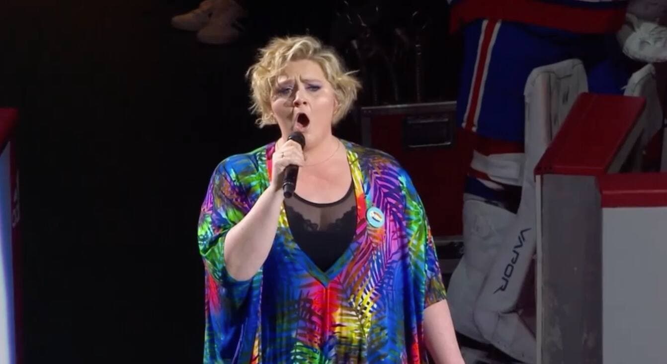Voyez Debbie Lynch-White interpréter l’hymne national du Canada à l’occasion de la Soirée de la Fierté au Centre Bell